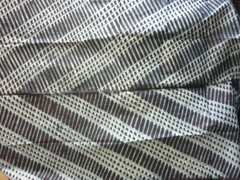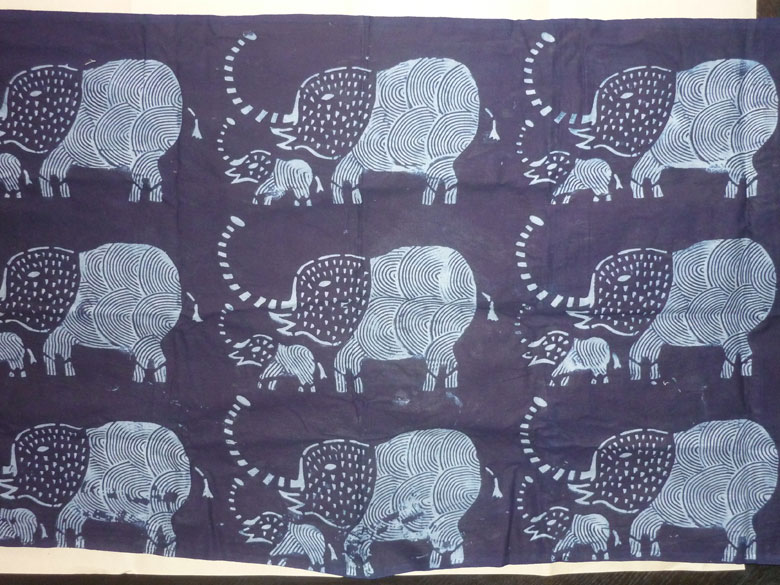 Po nanesení rezervy se textil několikrát máčí v hliněných kádích zapuštěných do země. Temná indigová barva se v nich stále doplňuje, ale nevyměňuje se. Po usušení se často látka ještě "zpracovává" tlučením dřevěnou palicí, aby získala na povrchu potřebný lesk a byla pak lépe prodejná. Rafiové vlákno se místy ponechává v látce jako důkaz pro zákazníka, že látka je nová, nepoužitá. Na místním trhu není zvykem látku pro zákazníka ustalovat, po prvním vyprání přebytečná barva odchází.